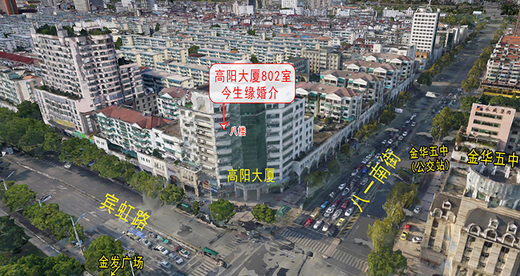 金華市今生緣婚介工作室 地址:金華市八一南街428號高陽大廈802室(八一南街和賓虹路十字交叉路口,金發(fā)廣場旁邊,金華五中對面)